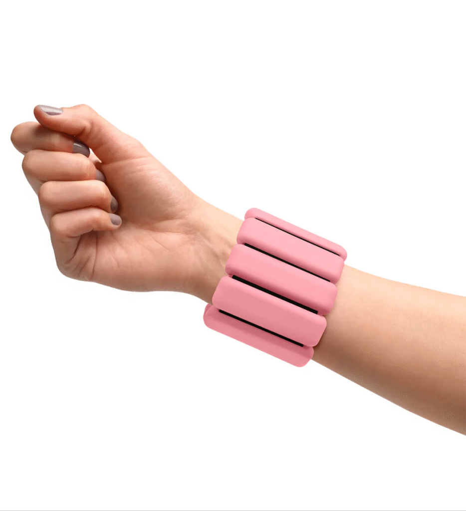 Bala Bangles earned their cult following for more than just looks. Each pair features soft silicone-coated weights with adjustable straps that wrap comfortably around your wrists or ankles. They add light resistance (typically 1–2 pounds per side) to everyday movements, enhancing workouts like yoga, barre, Pilates, or even walks around the block.