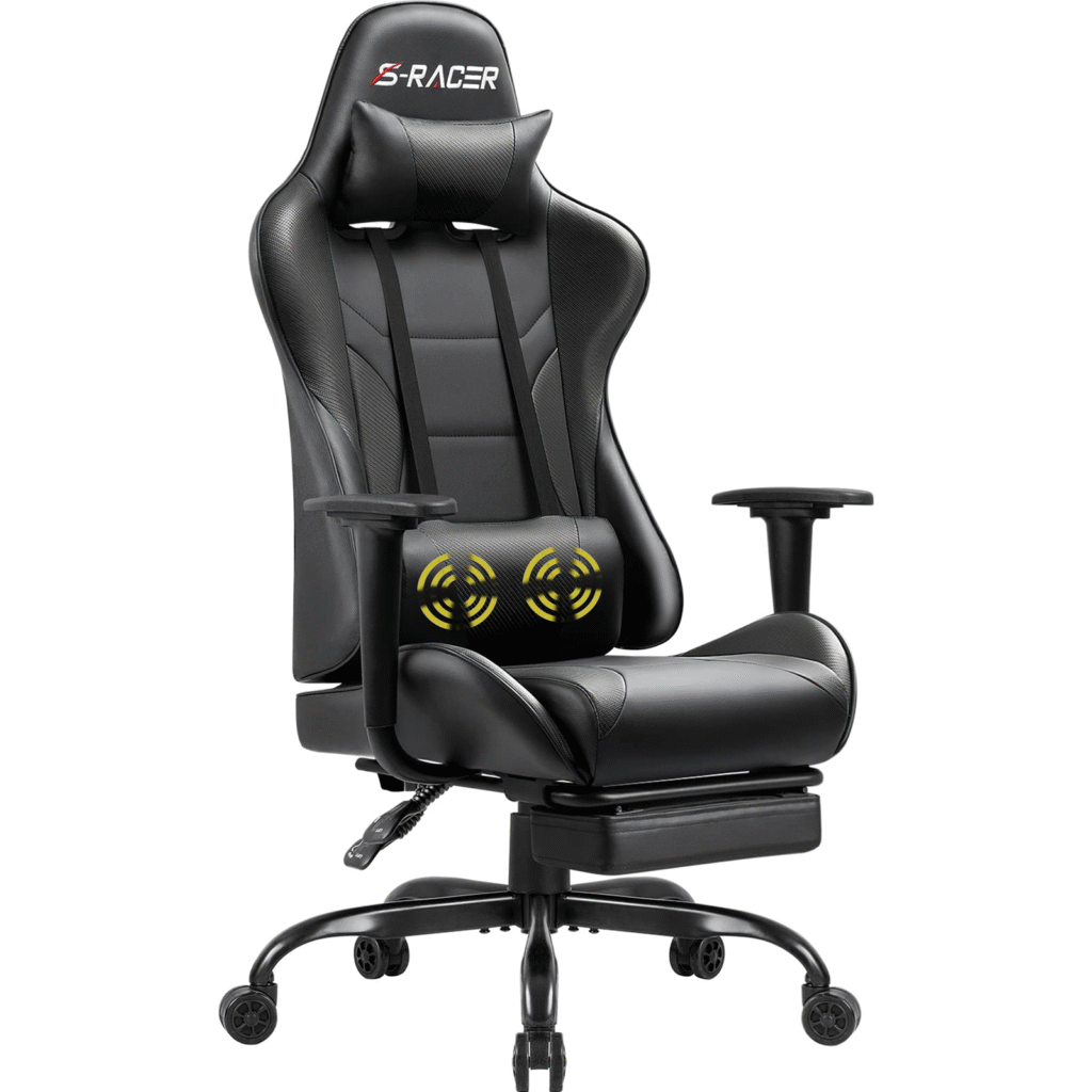 Homall’s signature S-Racer is one of the longest-running bestsellers in budget gaming chairs. It looks premium, offers a comfortable recline, and includes lumbar and neck pillows. While its adjustability is limited compared to Secretlab, it is surprisingly durable for the price and works well for basic home office setups or starter gaming rigs.